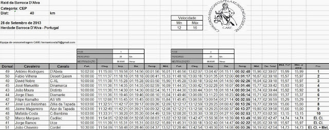 Resultados del Raid Internacional de Barroca D’Alba, celebrado este pasado sábado día 28 de Septiembre de 2013 en Portugal.