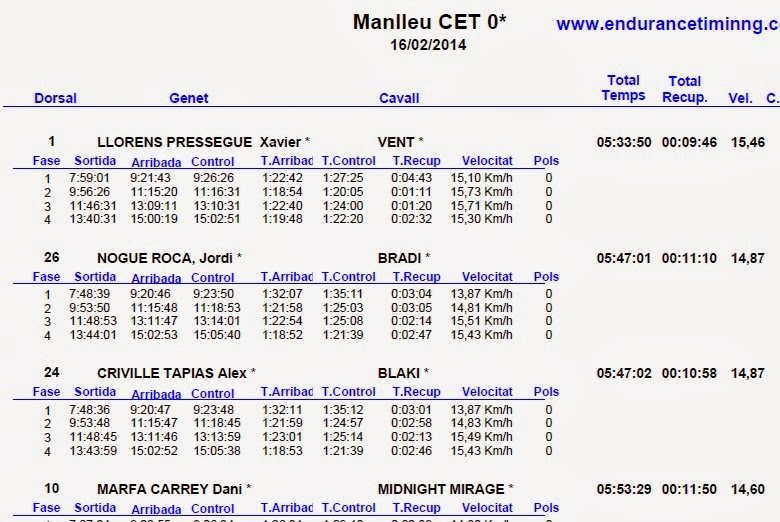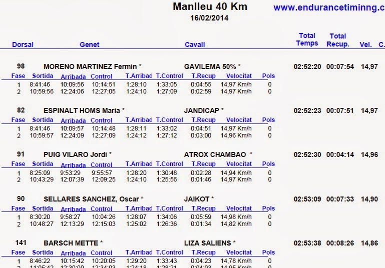 Resultados del Raid Hípico de Manlleu (Barcelona), prueba que se corrió el pasado domingo 16 de Febrero de 2014.