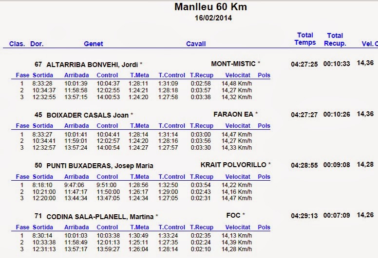 Resultados completos en: Manlleu 16 de febrer. CET 0* 90km
