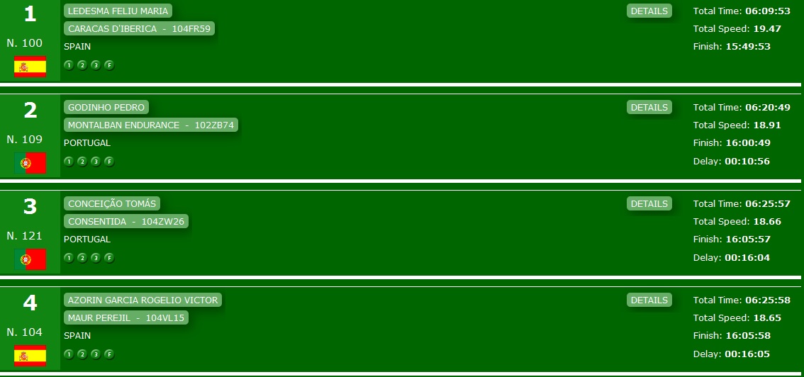 Resultados del Raid Hípico de Rio Frio (POR), prueba que se ha corrido en el día de hoy 12 de Marzo de 2016.