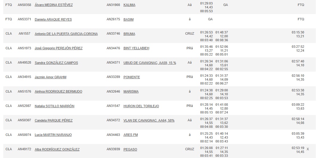 Resultados del Raid Hípico el Cañuelo (Córdoba).