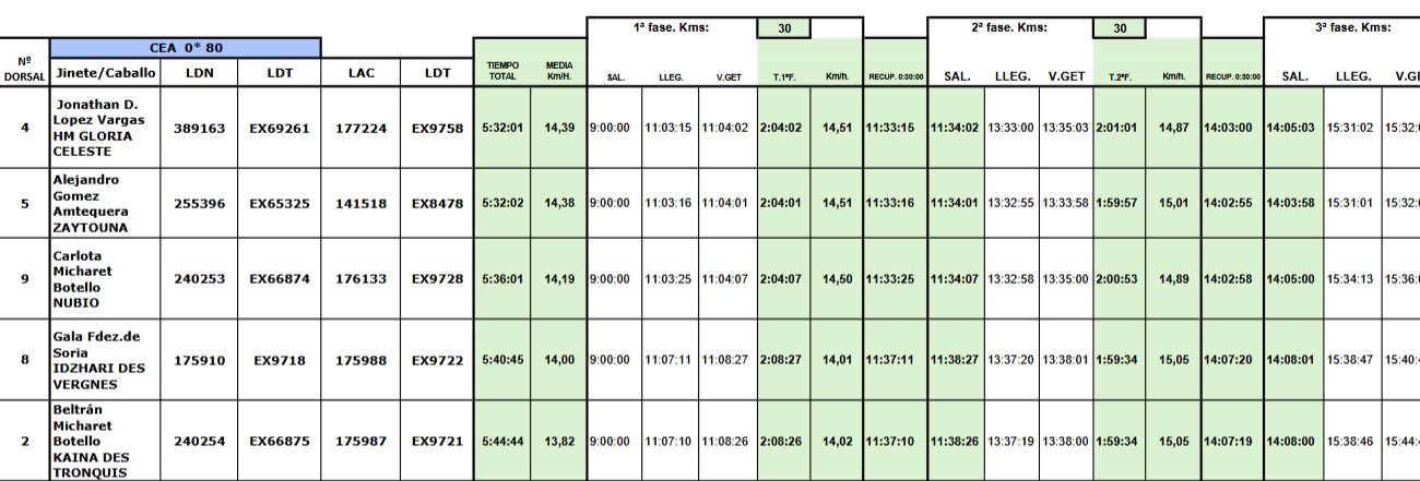 Estos son los Resultados del Raid Hípico El Corzo en Badajoz, prueba organizada por la Escuela de Equitación el Corzo y Federación Hípica Extremeña Dirección. General de Deporte. Que se corrió ayer 22 de Marzo de 2026.