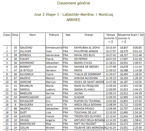 Resultados del Segundo día de Jornada del Les Deux Jours de Montcuq (FRA).