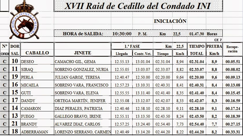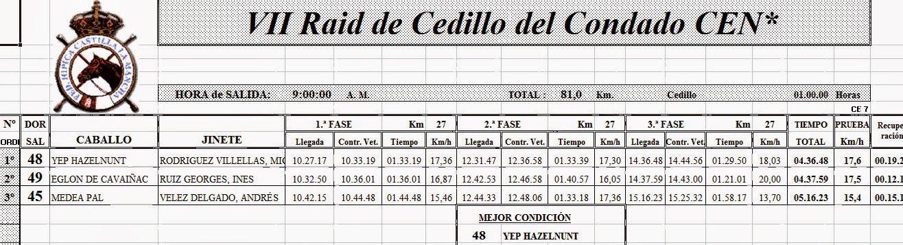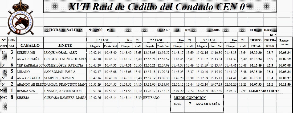 Resultados del VII Raid de Cedillo del Condado (Toledo).