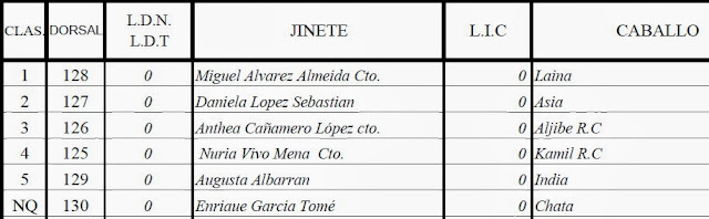 Resultados Provisionales del VII Raid Hípico de Cáceres, Sierra de la Mosca, Llanos de Sierra Fuentes, donde se ha corrido el Campeonato de Extremadura Alevín e Infantil.