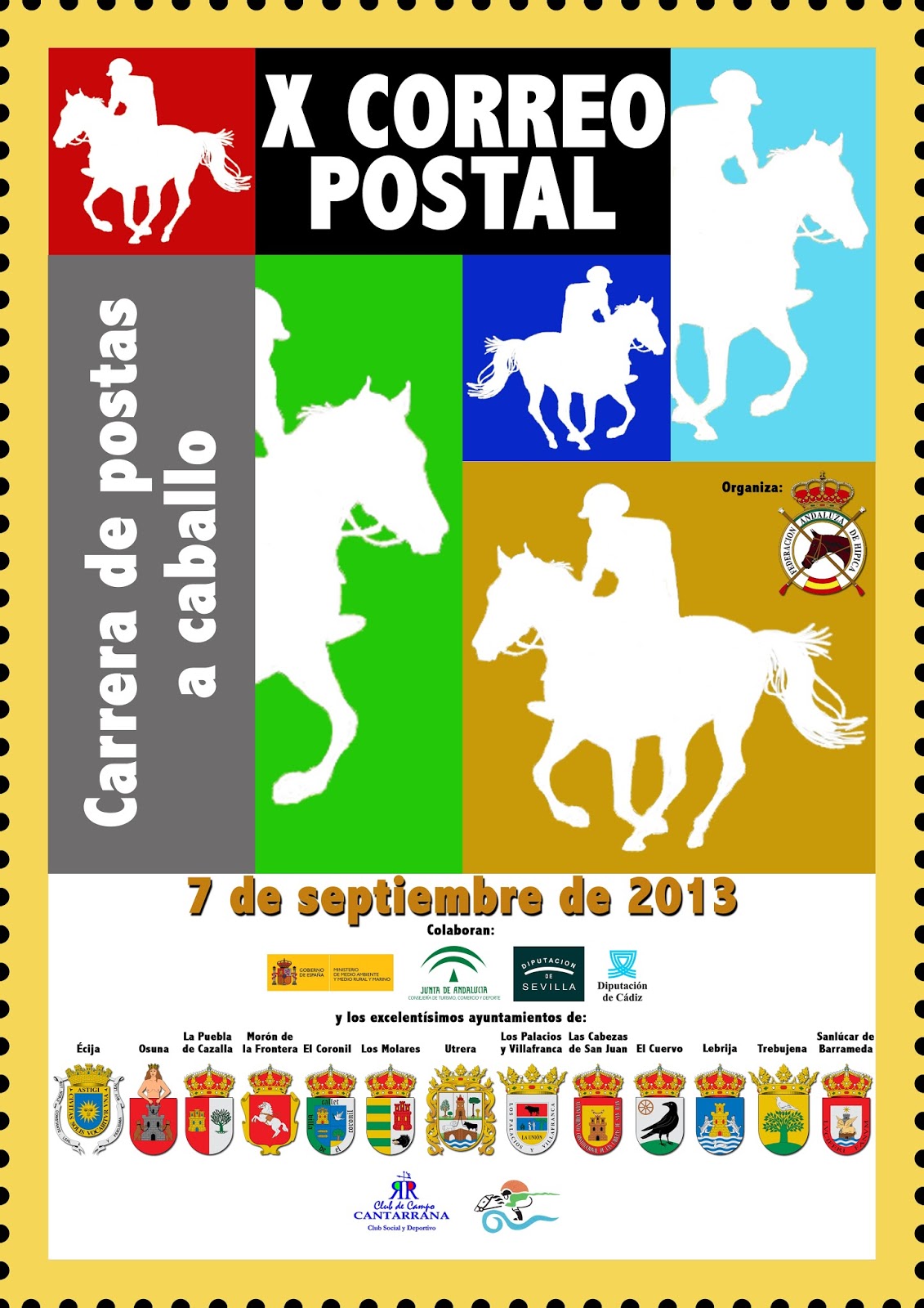 Resultados del X Correo Postal, celebrado en el día de ayer 7 de Septiembre de 2013, desde Écija a Sevilla, con nueve Equipos participantes.