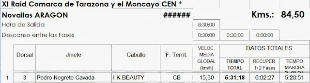 Resultados del XI Raid Hípico «Comarca de Tarazona y el Moncayo» en Novallas (Aragón), corrido este pasado sábado día 7 de Diciembre de 2013.