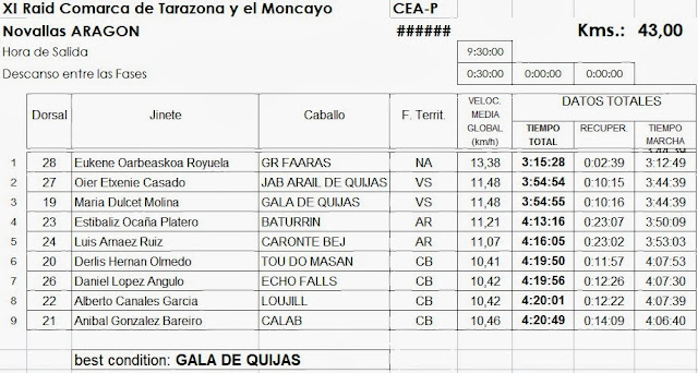 Resultados del XI Raid Hípico «Comarca de Tarazona y el Moncayo» en Novallas (Aragón), corrido este pasado sábado día 7 de Diciembre de 2013.