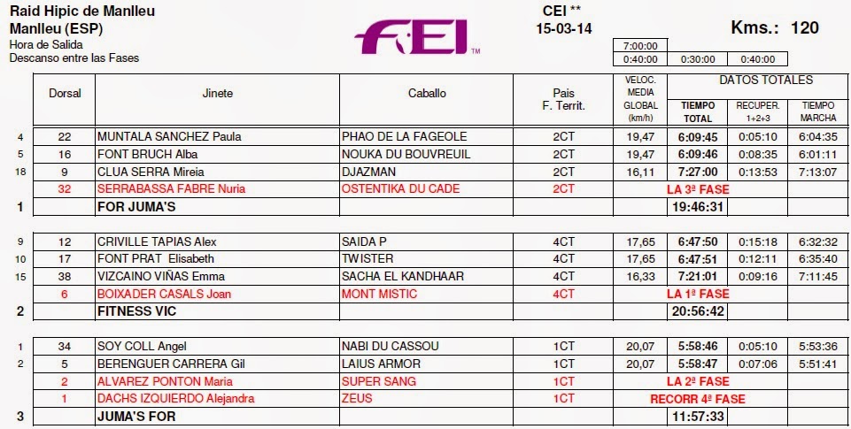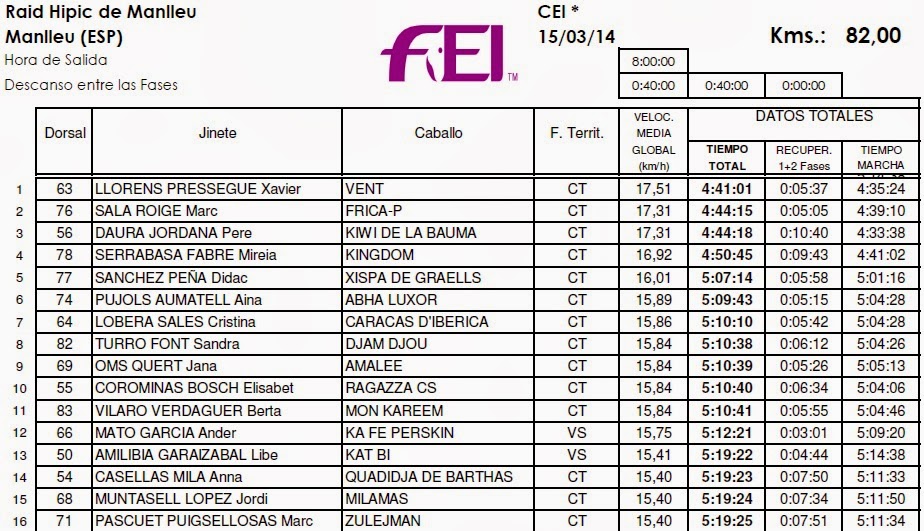 Resultados Oficiales del XXII Raid Hípico de Manlleu (Barcelona).