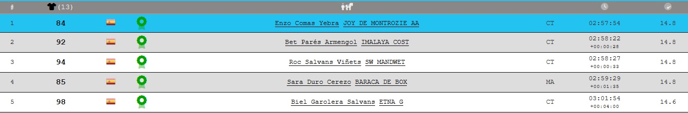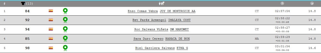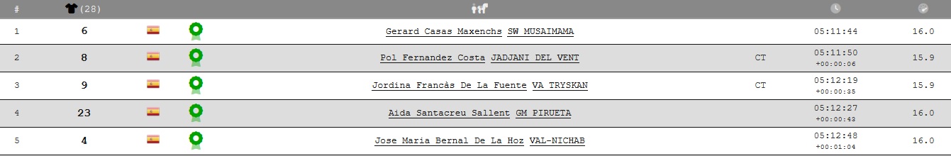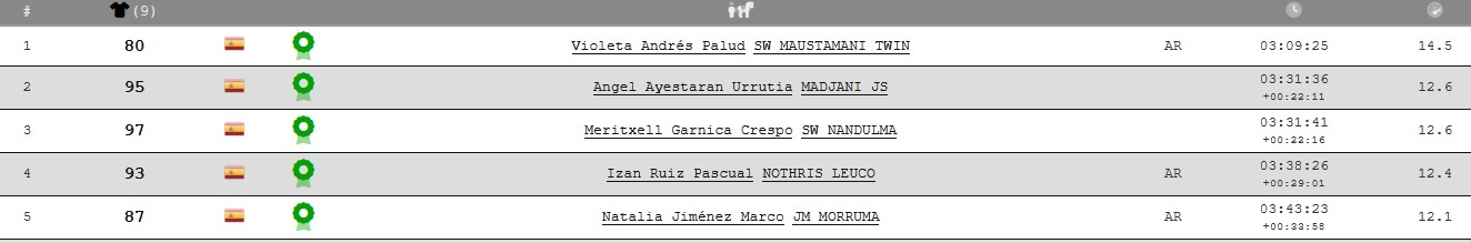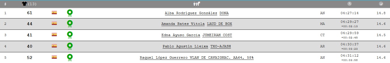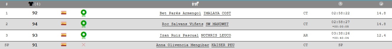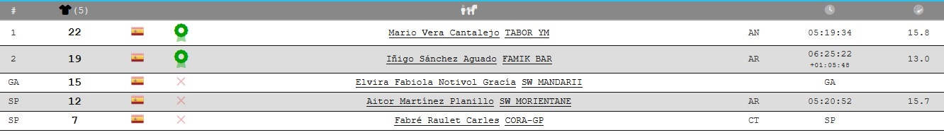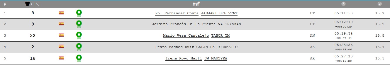 Fuente:  Resultados de Raid – Campeonato España Interautonomías Chronus by Daniel L. Fenaux.