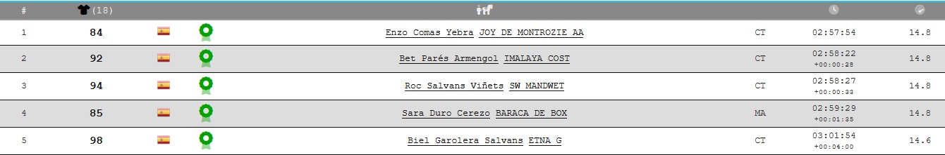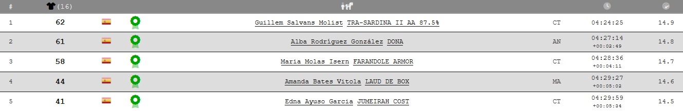 Resultados Provisionales del Campeonato de España Interautonomias 2025.