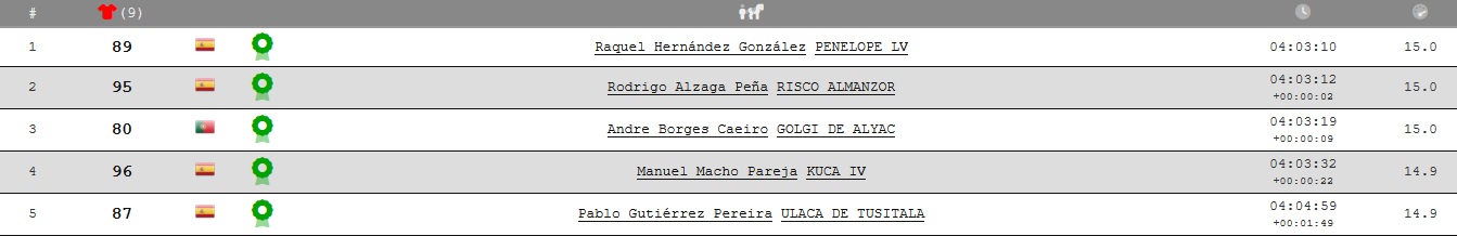 Resultados Provisionales del Raid Hípico Yeguada Tusitala en Villacastin (Segovia).