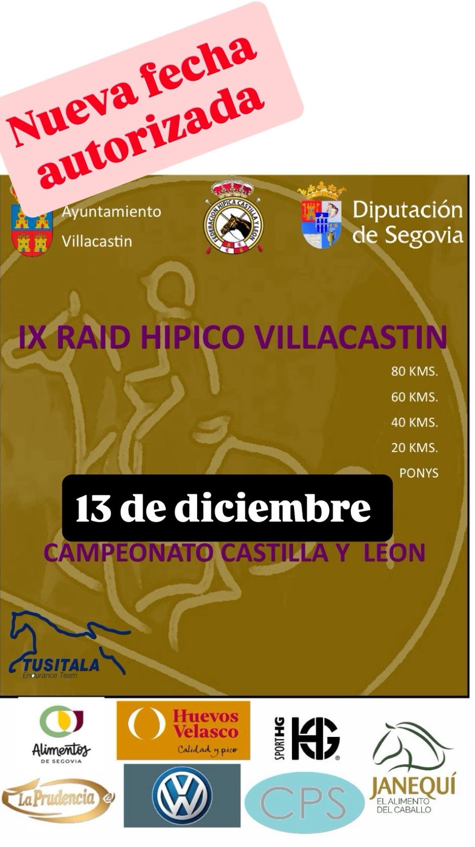 Resultados Provisionales del Raid Hípico Yeguada Tusitala en Villacastin (Segovia), Campeonato de Castilla y León, prueba organizada por la Yeguada Tusitala, y que se ha corrido el día  13 de Diciembre de 2025.