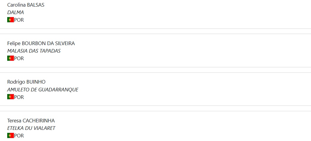Todos los Inscritos en:CEIYJ2* 120 Portuguese Young Rider & Junior Championship | IX Raid Montemor o Novo – Superequus ES
