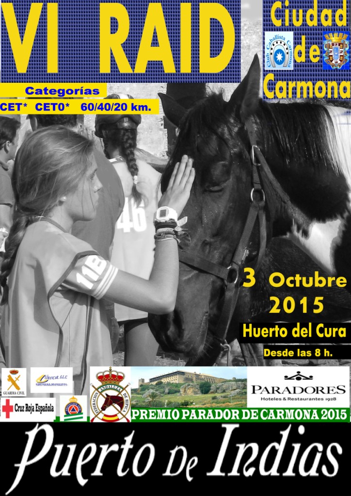 El próximo día 3 de Octubre de 2015 se celebrara el VI Raid Hípico Ciudad de Carmona (Sevilla), prueba organizada por el Club Caballistas de Carmona.