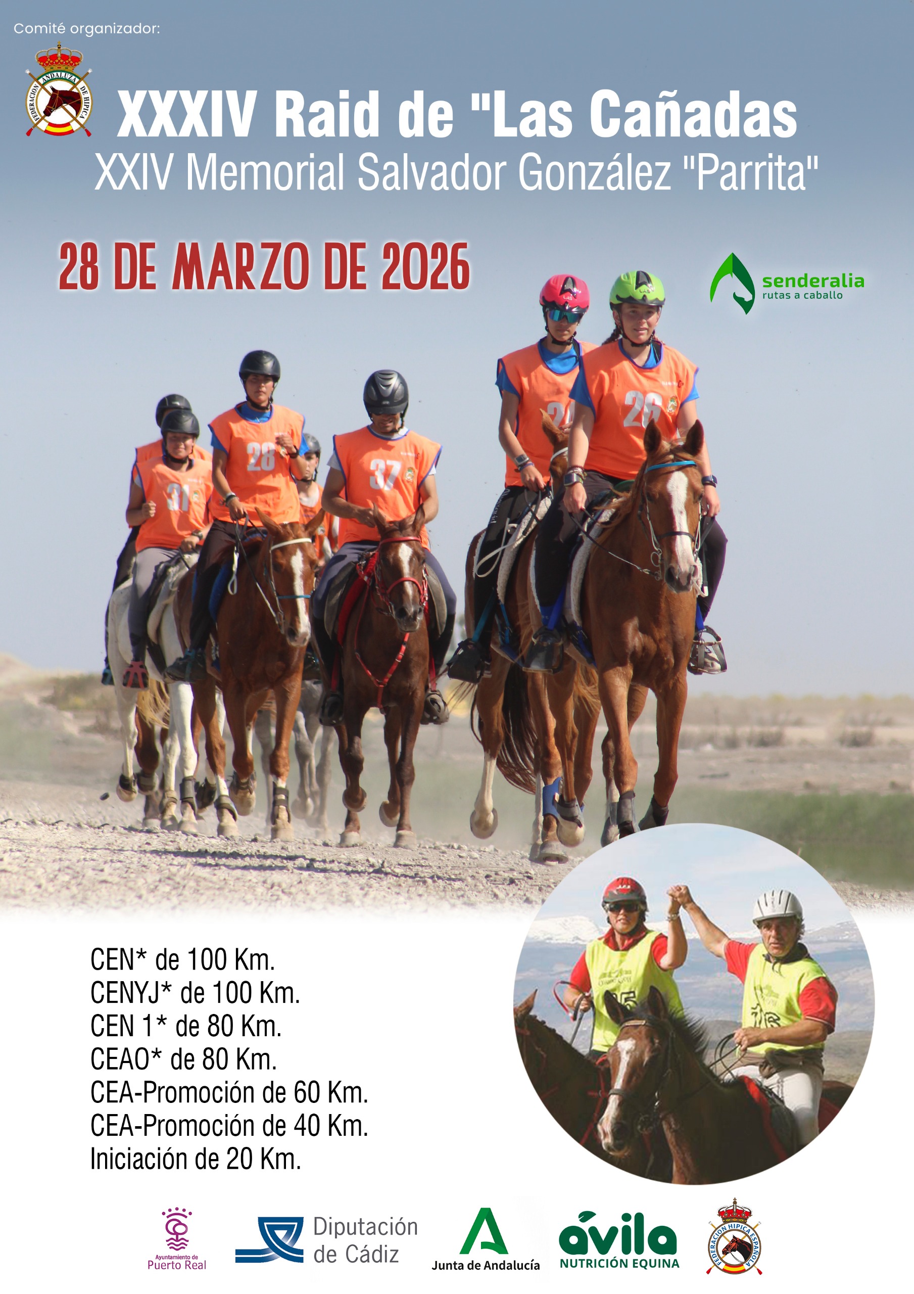 El día 28 de Marzo de 2026, se correrá el XXXIV Raid Hípico Las Cañadas en Puerto Real (Cádiz) y XXIV Memorial Salvador Gómez «Parrita»,  prueba organizada por Senderalia Ecuestre y la Federación Andaluza de Hípica.