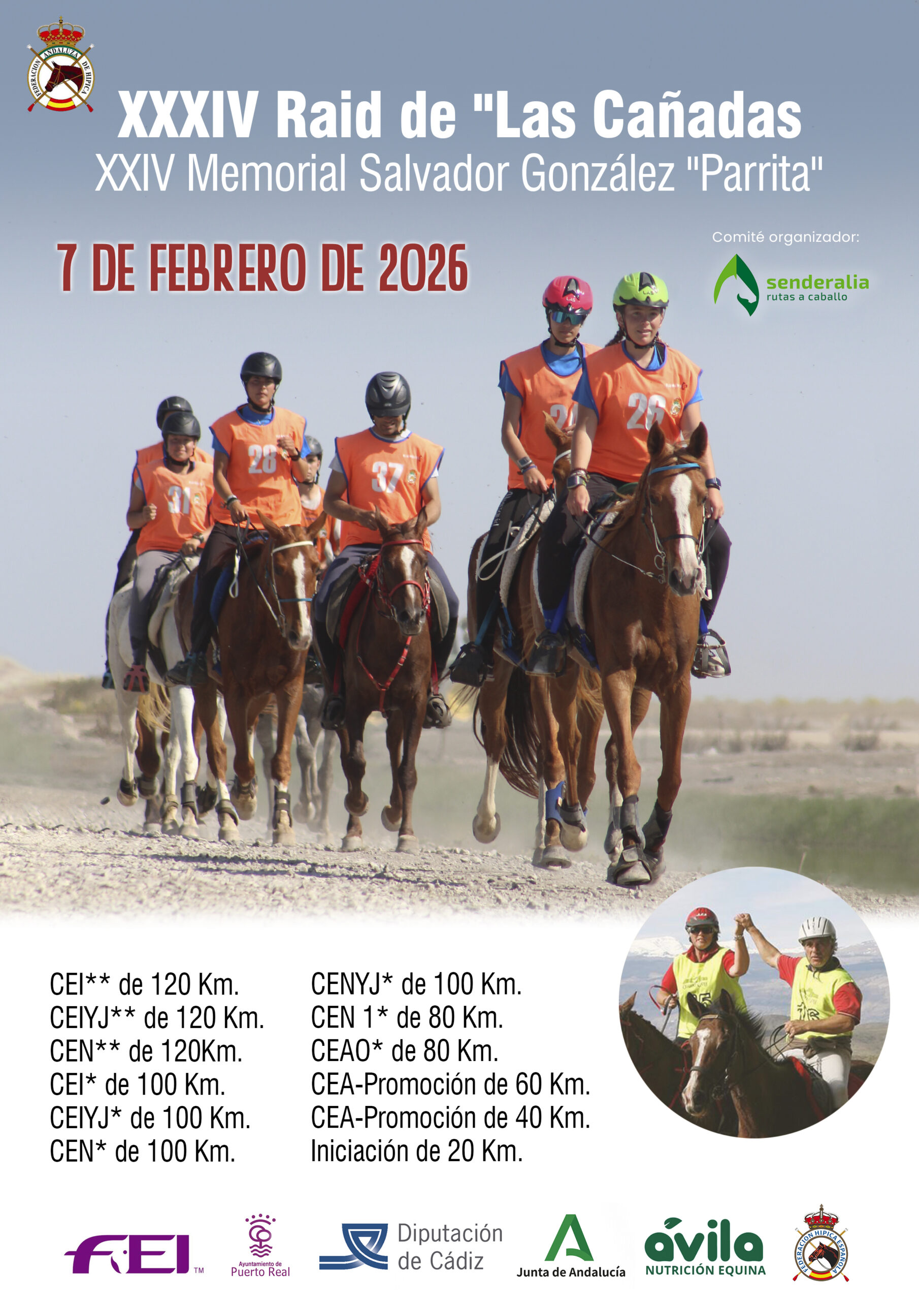 El día 7 de Febrero de 2026, se correrá el XXXIV Raid Hípico Las Cañadas en Puerto Real (Cádiz) y XXIV Memorial Salvador Gómez «Parrita», La primera prueba del calendario Andaluz organizada por Senderalia Ecuestre y la Federación Andaluza de Hípica.